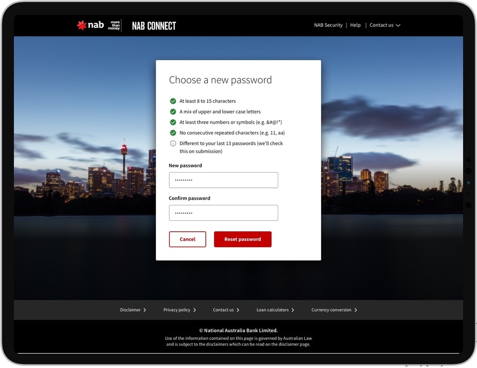 Ensure you always have access to NAB Connect with a simple password reset. Just follow these steps.