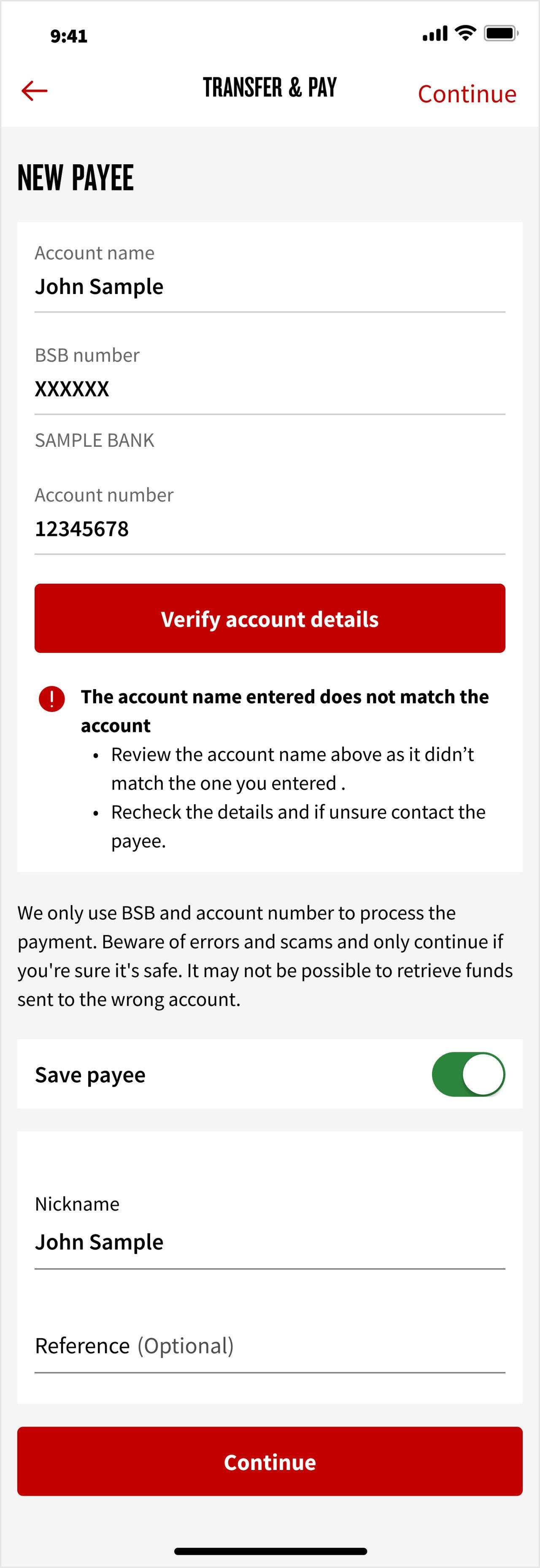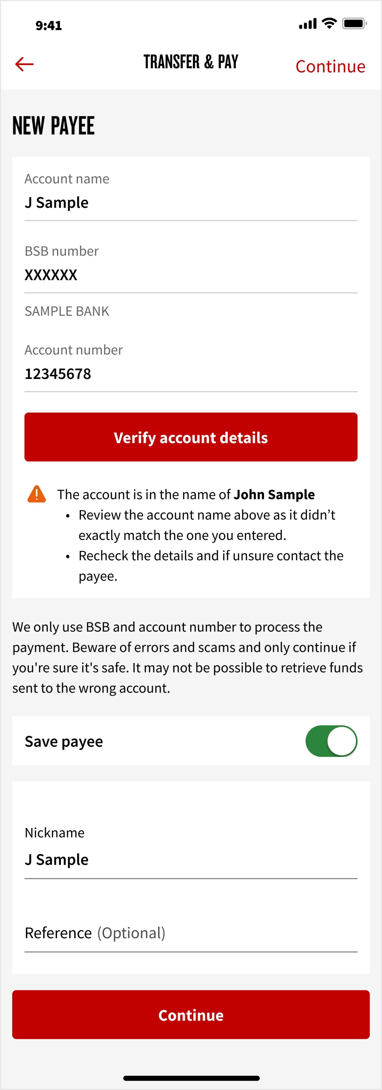 When making payments by BSB and account number, it gives you added confidence that your money is going where you intend it to.