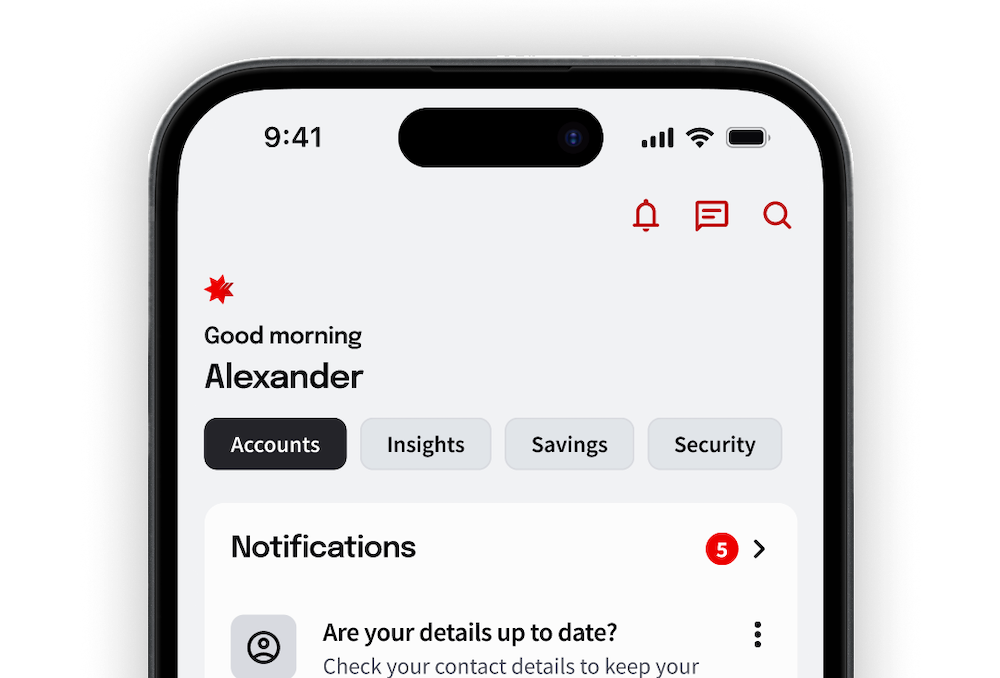 A more personal experience. Easier to navigate, with your accounts and insights all in view.