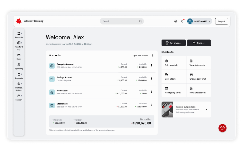 We’ve redesigned the layout and navigation across NAB Internet Banking and the NAB app to make everyday banking clearer and easier to use.