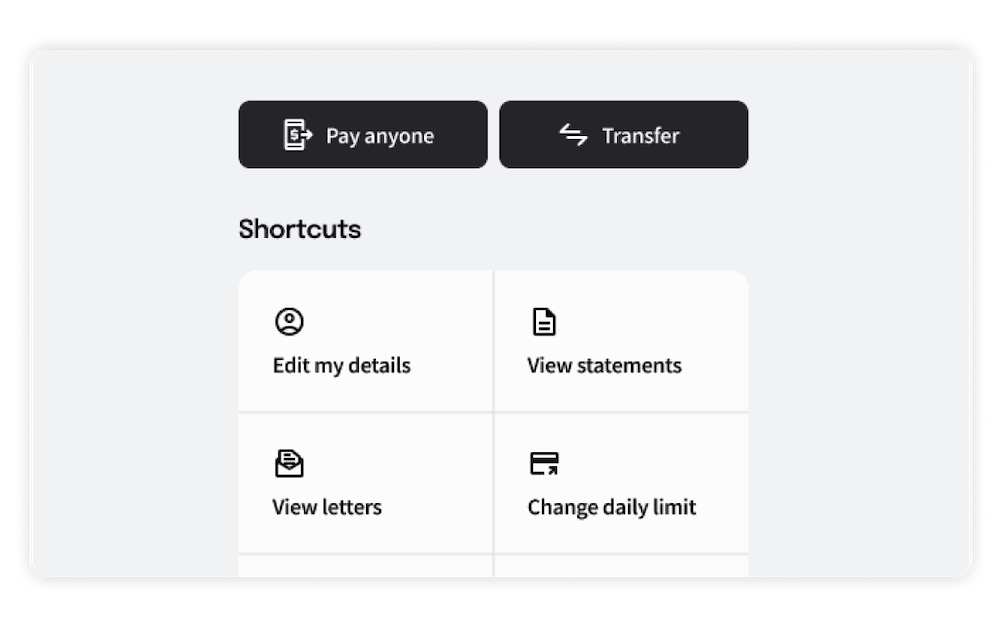 Pay anyone, transfer funds, view statements and manage your daily limits. All within reach.